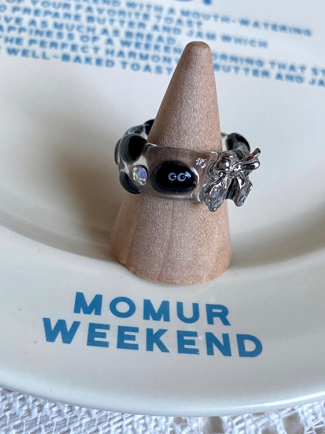 poyo's accessory poyo's clear ring サイズ:約13号(直径17.0mm) 約15号(直径17.7mm) 素材:レジン、アクリル 新作のpoyo'sクリアリング うし柄でデザインした遊び心のある おしゃれポヨのうっとりリングです♡ blackかmilkのどちらかをお選びください 「みんなちがって、みんないい」 をコンセプトに、"それぞれのカタチや大きさ、 何ひとつ同じものはなく、だからこそみんなすばらしい" そんな個性を大切にしたアクセサリー ポヨの向きはランダムとなります ご指定ができませんのでご了承ください