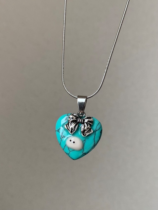 poyo's heart charm necklace size:約40cm+アジャスター5cm 素材:ステンレスシルバーチェーン、天然石ハートチャーム、レジン ※ハートのサイズやかたち、ポヨのデザインに若干の違いがあります。ランダムでの発送となりますのでご了承ください。 ※ご不明点やご質問がありましたら、遠慮なくメッセージからご連絡ください。 お手元に届くポヨを是非、気に入っていただけますと幸いです♡