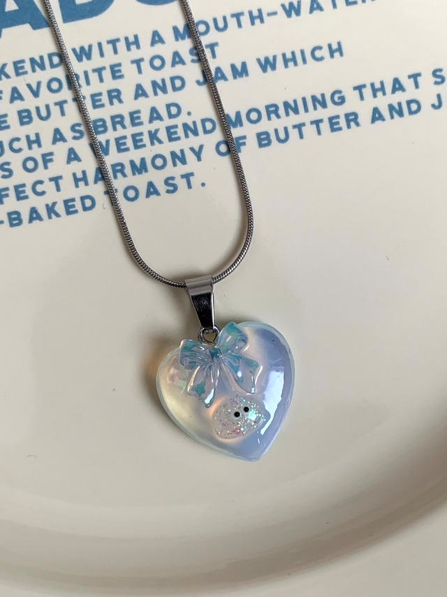 poyo's heart charm necklace size:約40cm+アジャスター5cm 素材:ステンレスシルバーネックレス、ガラスハートチャーム、レジン他