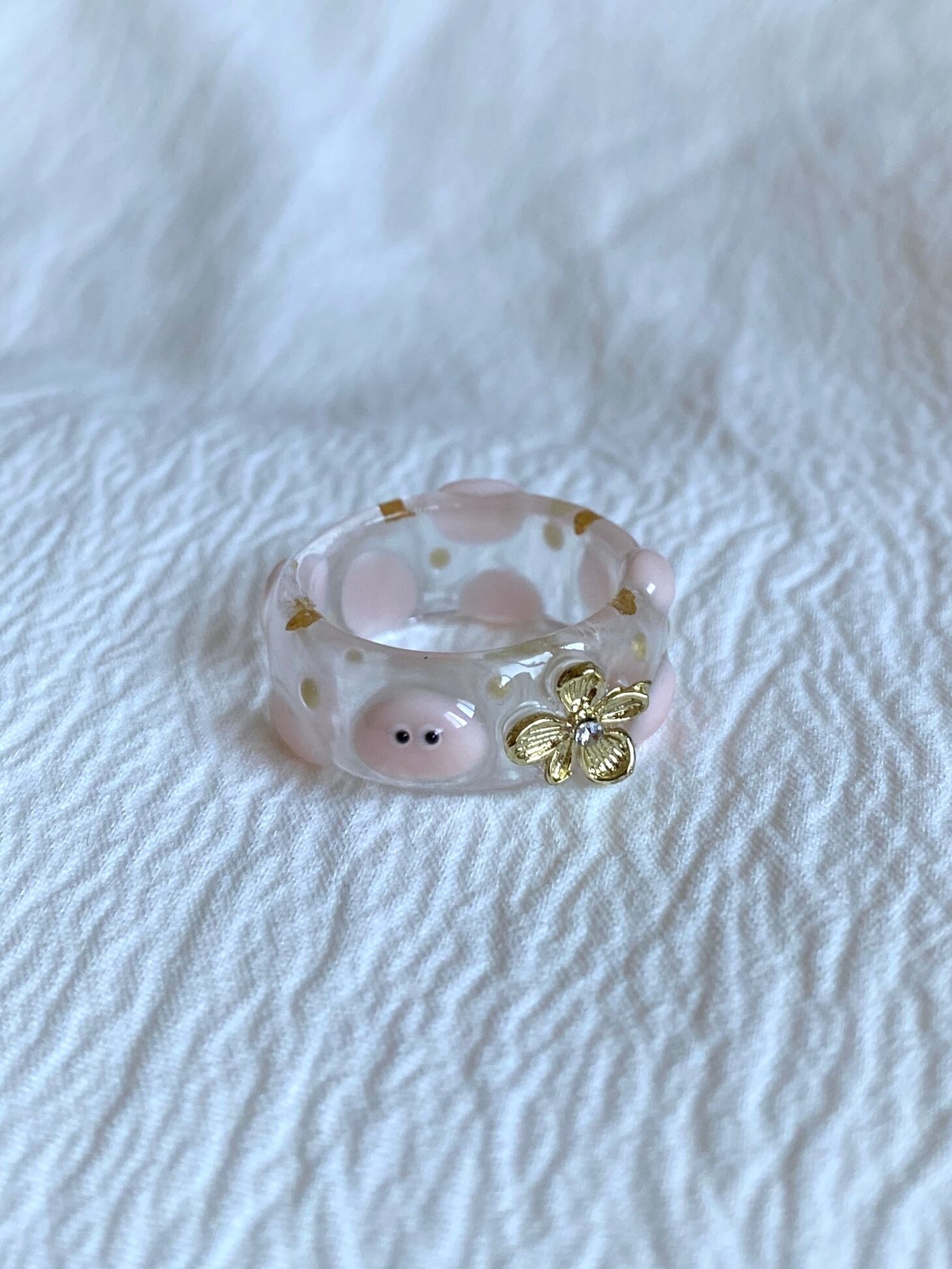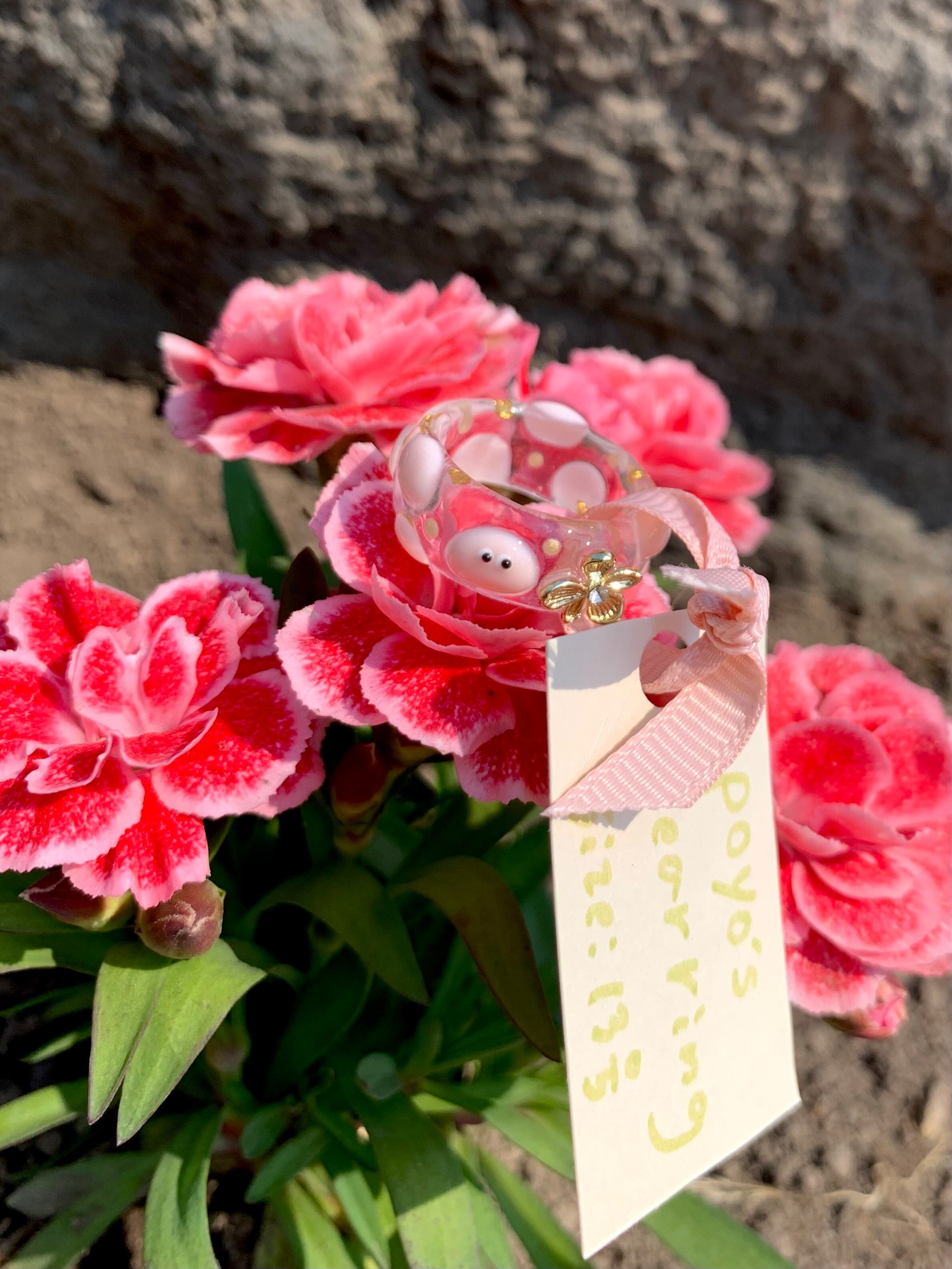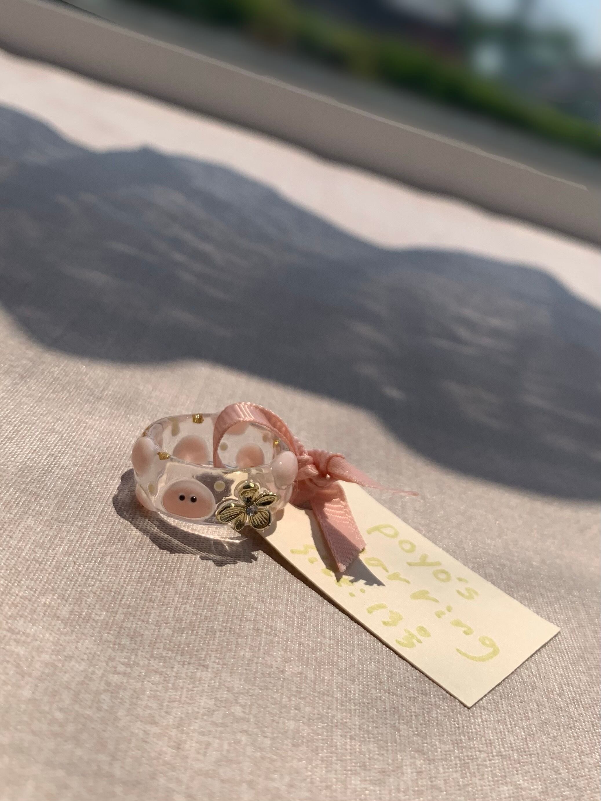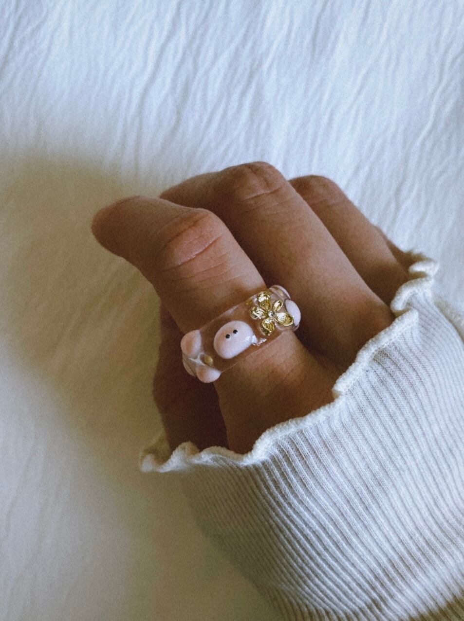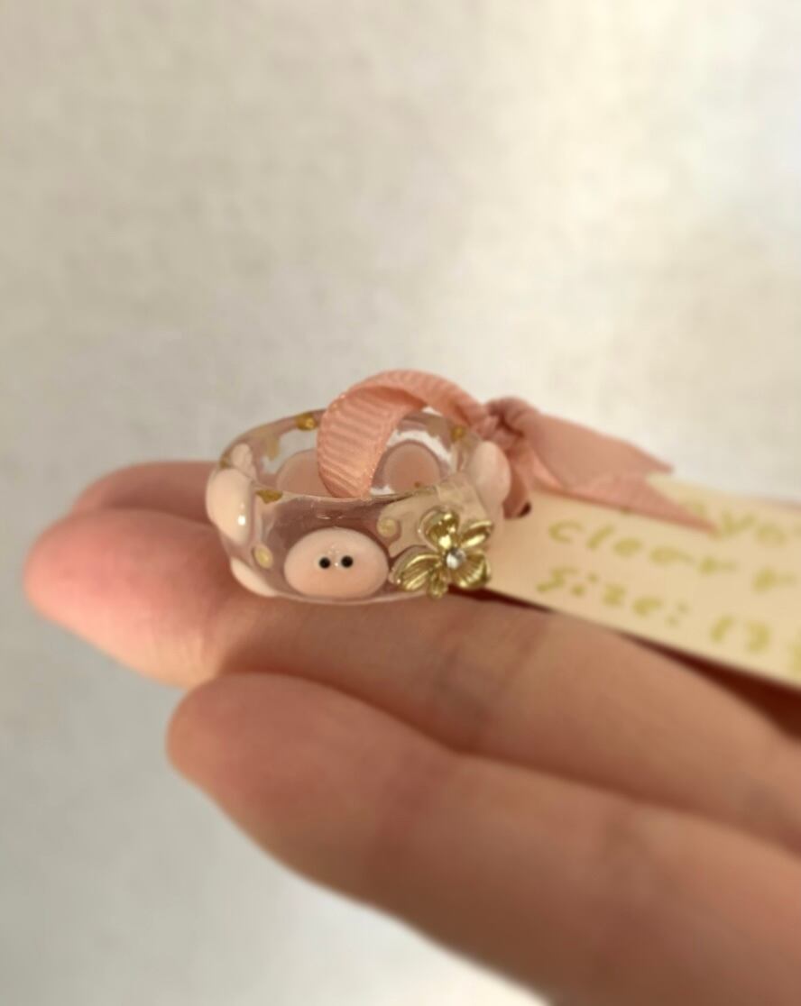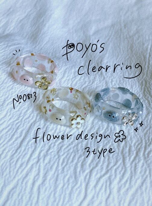 お花がワンポイントのpoyo's clear ring!
