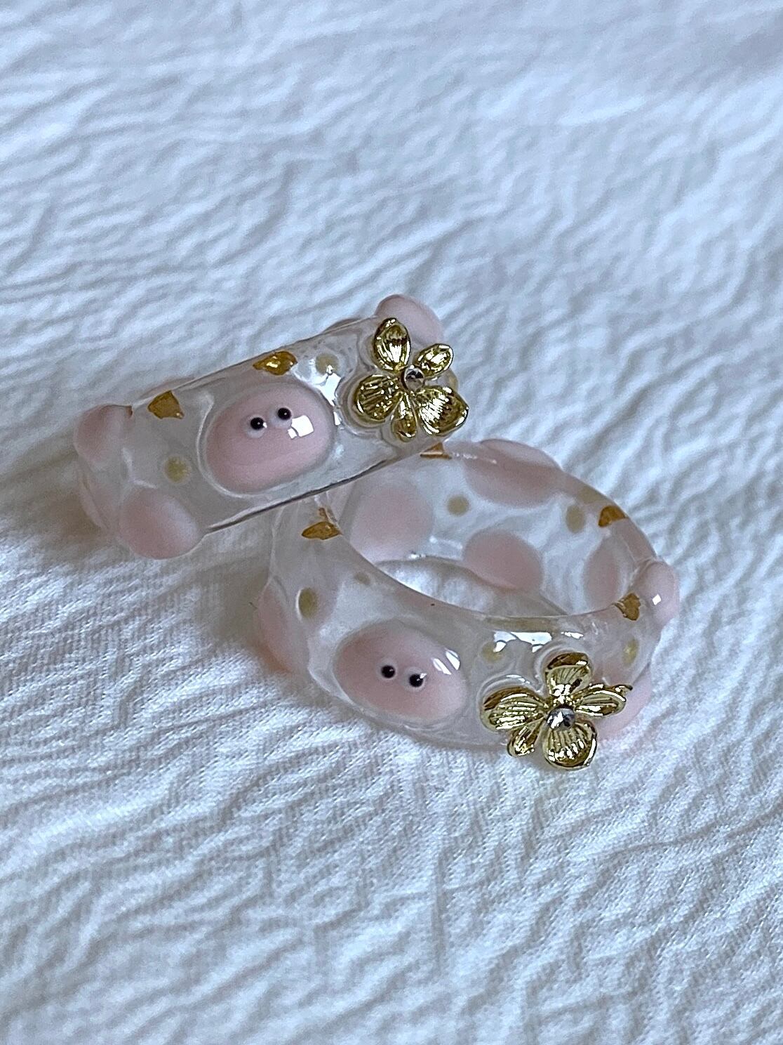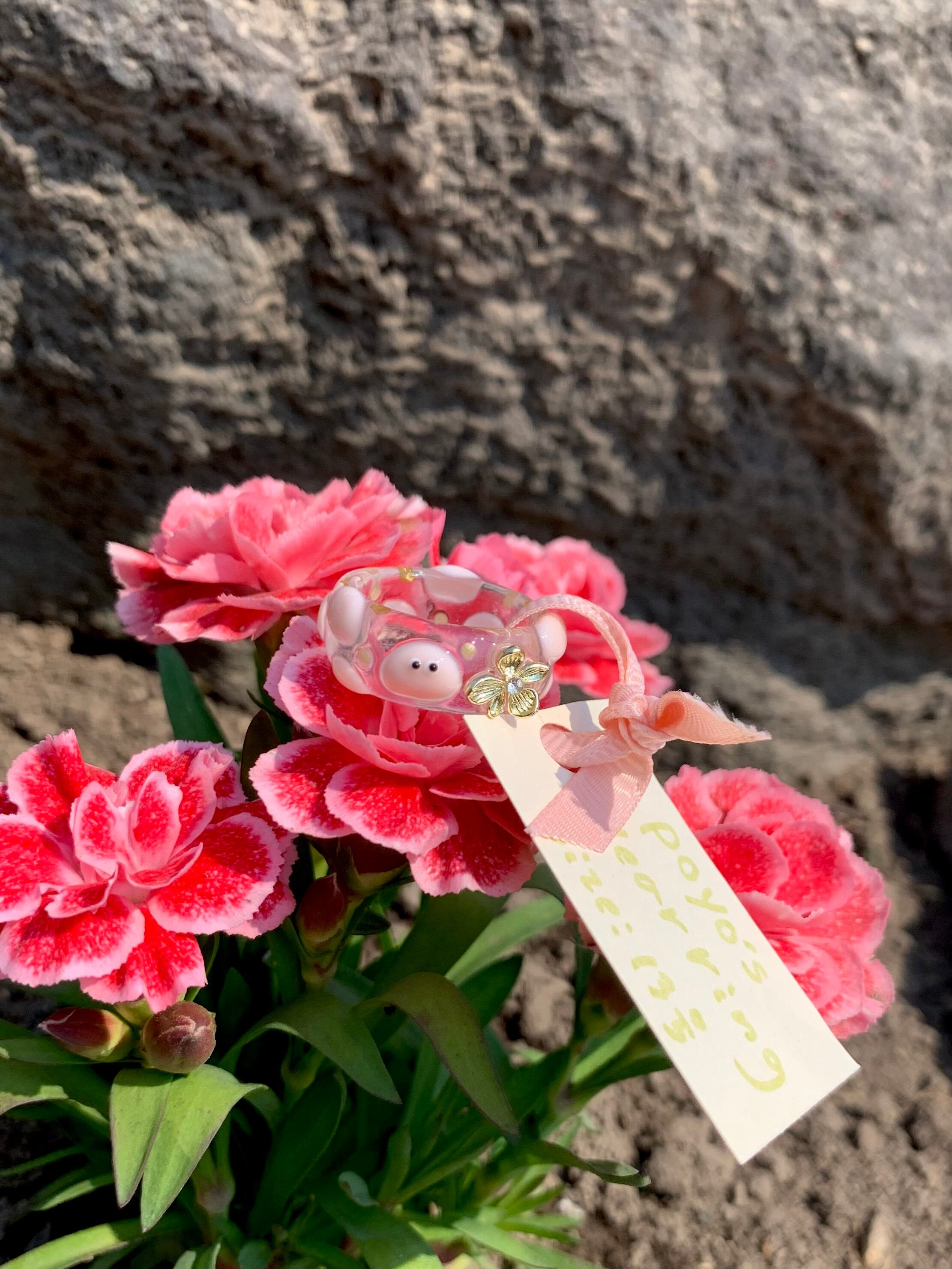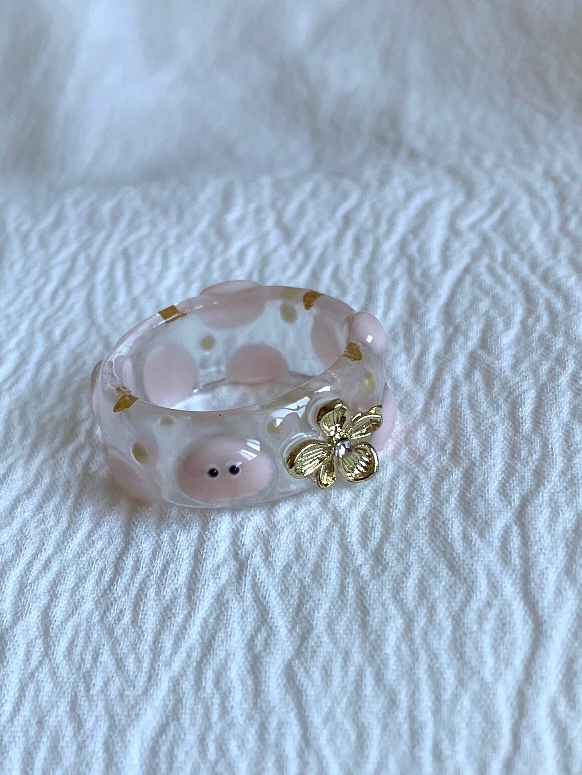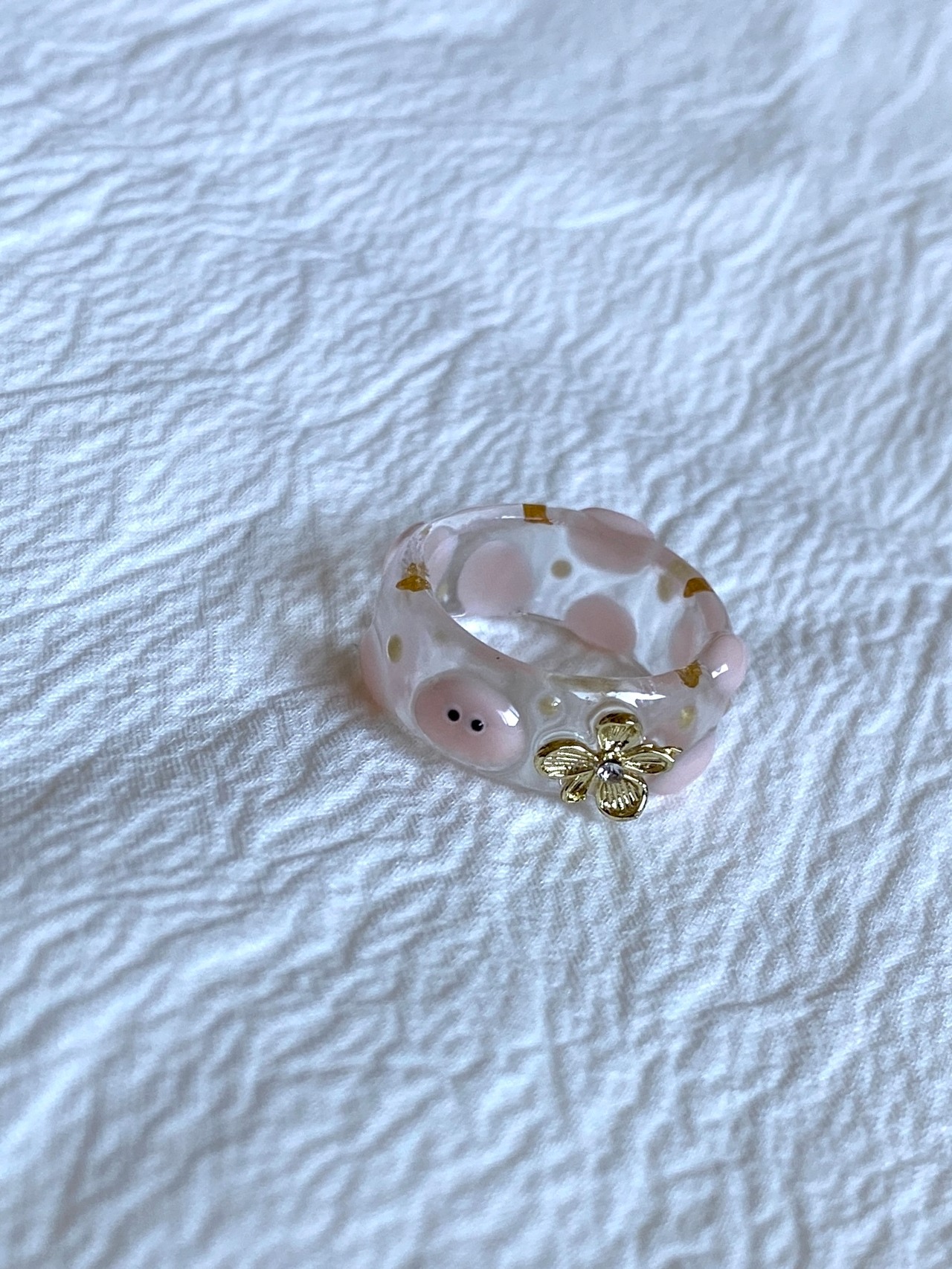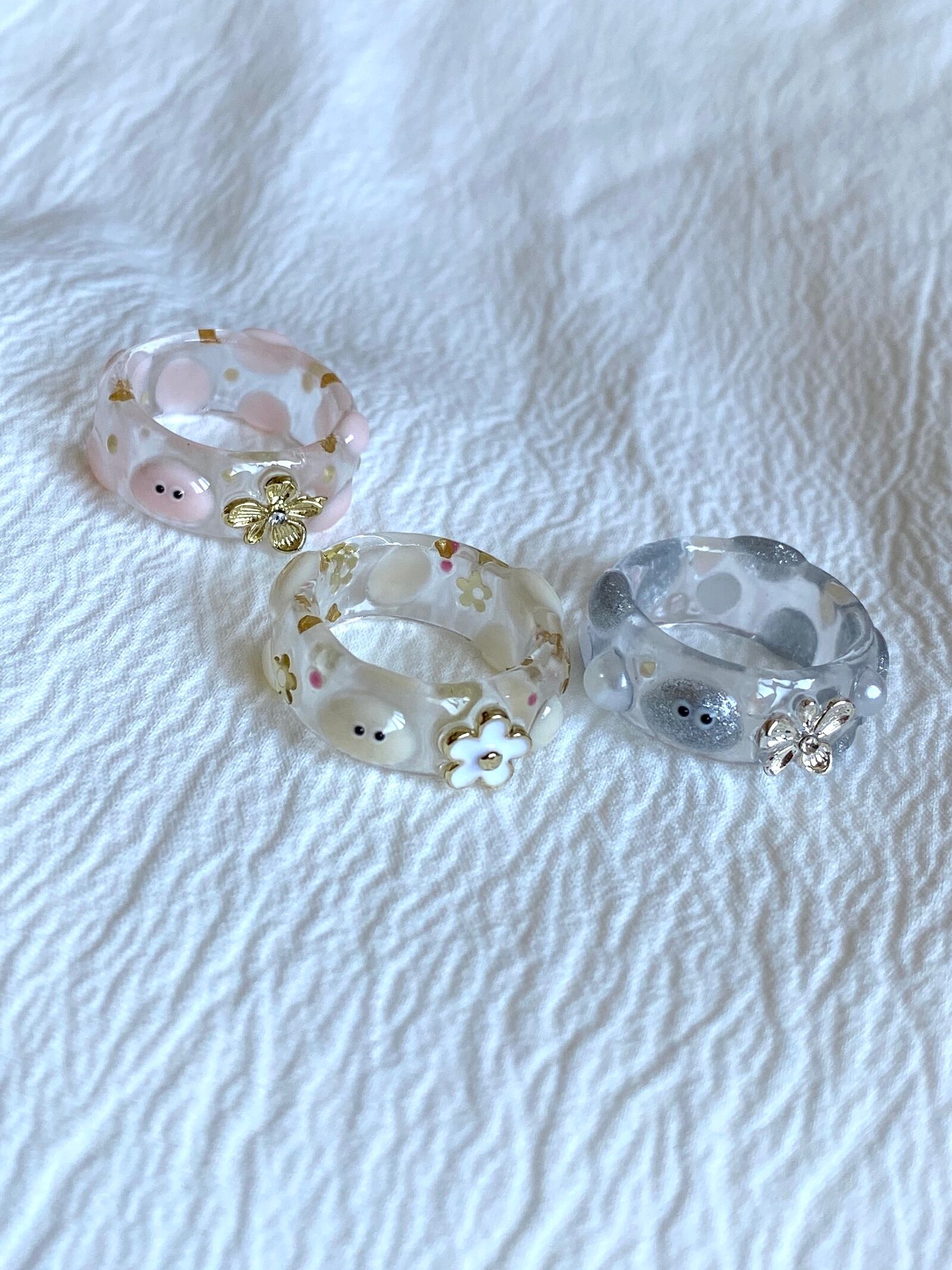 お花がワンポイントのpoyo's clear ring!