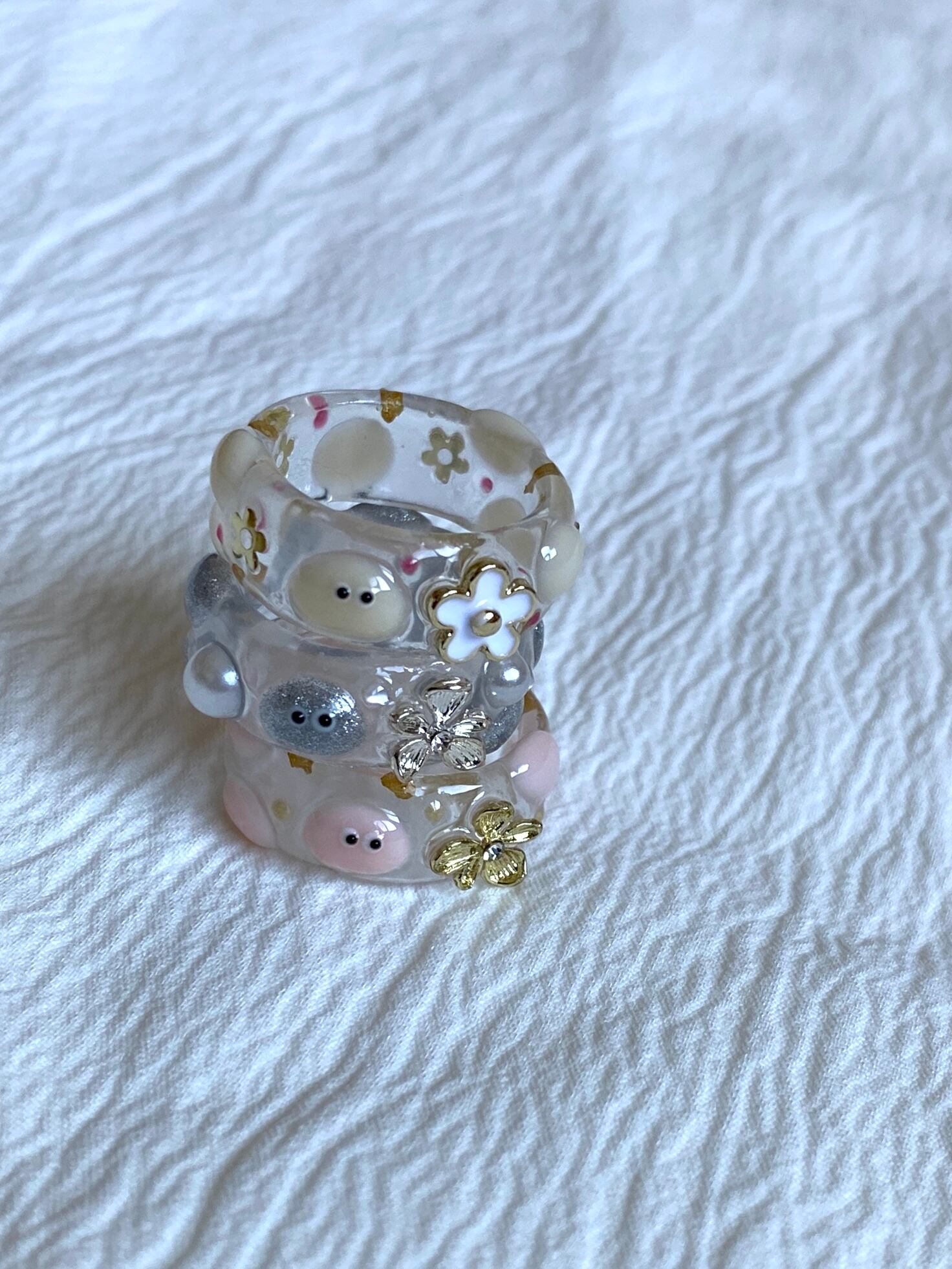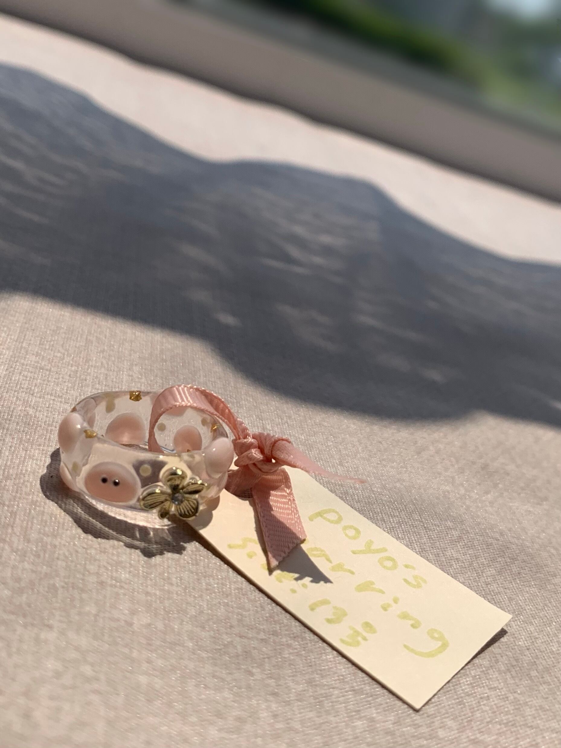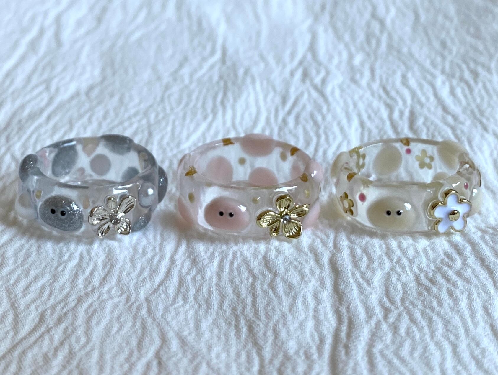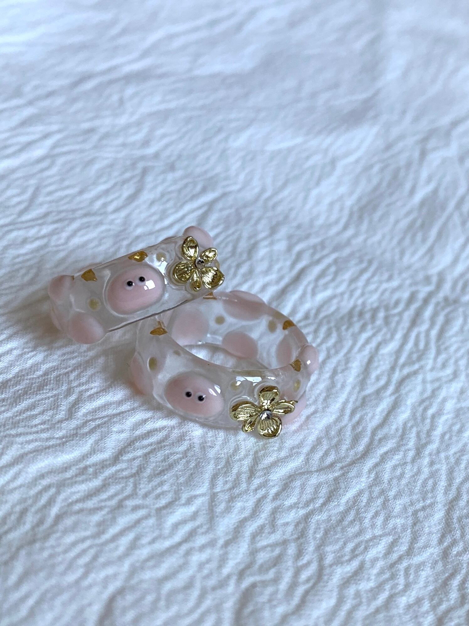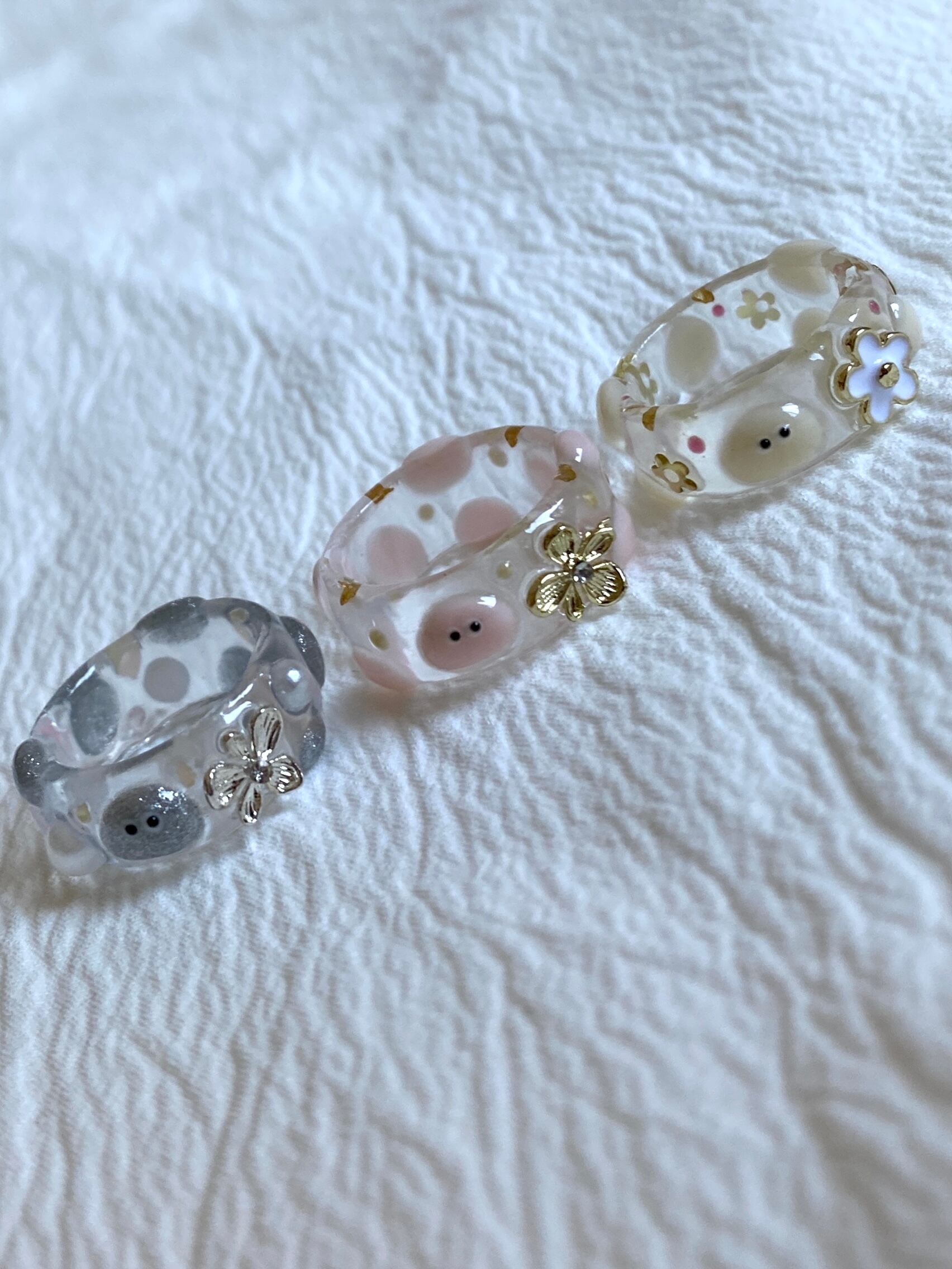 お花がワンポイントのpoyo's clear ring!