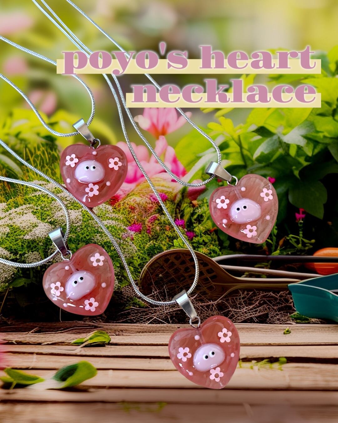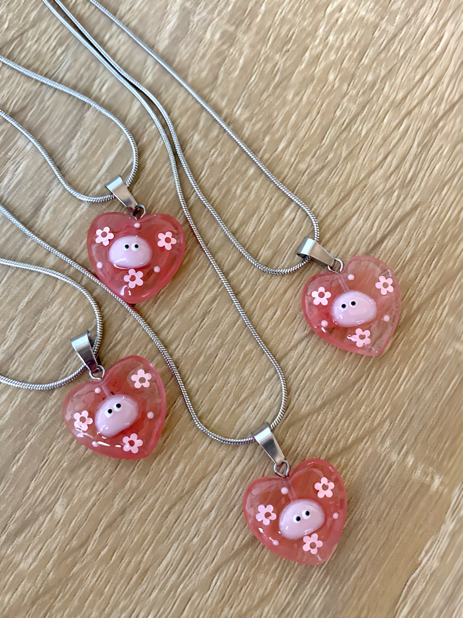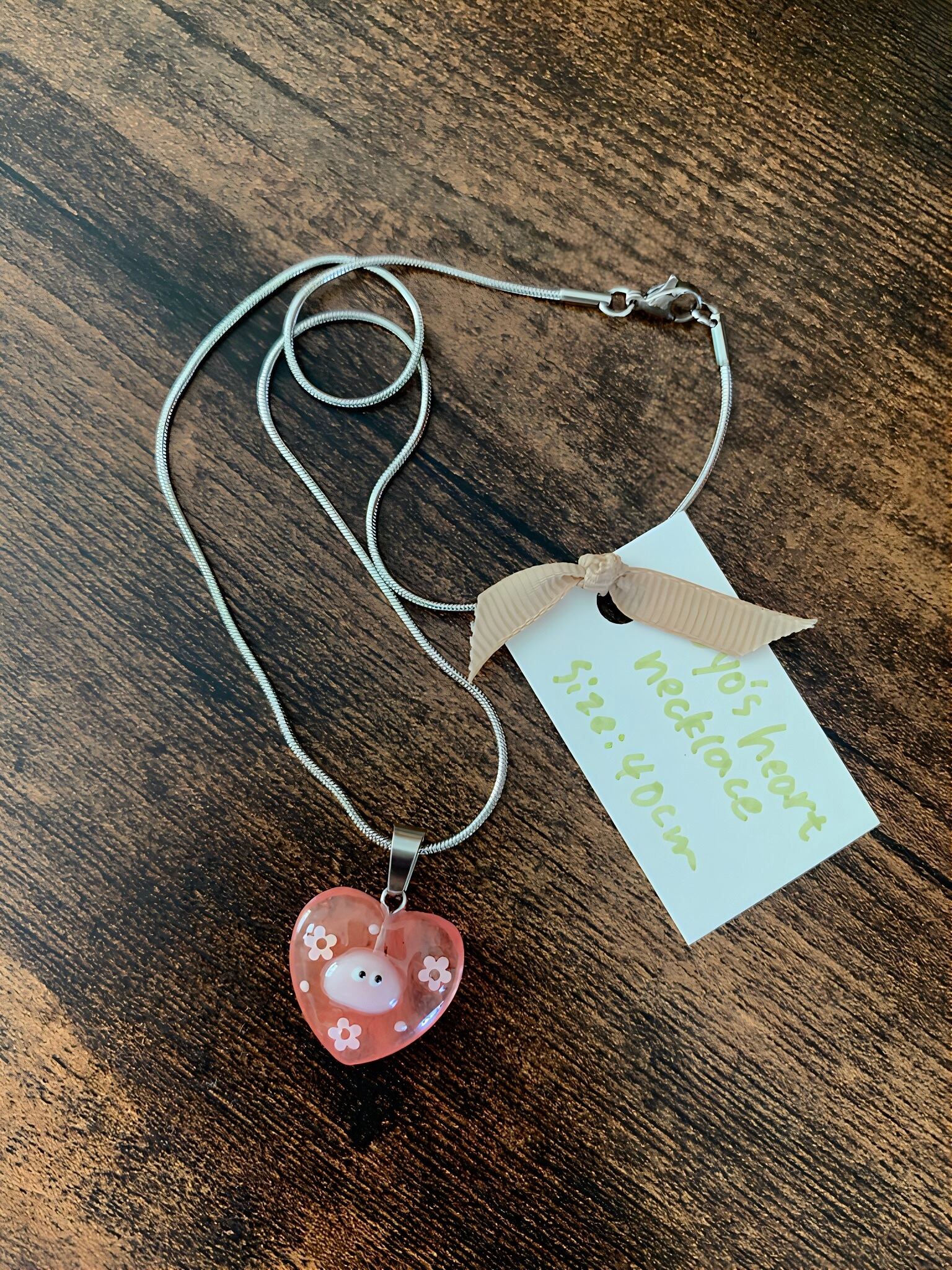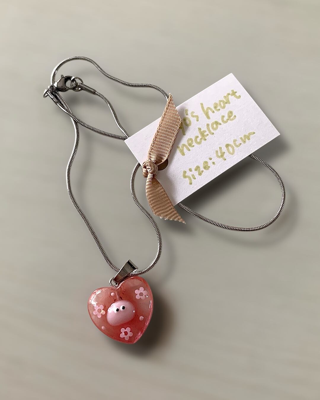 ステンレスシルバーチェーン、ハートストーン、レジン