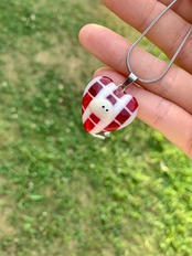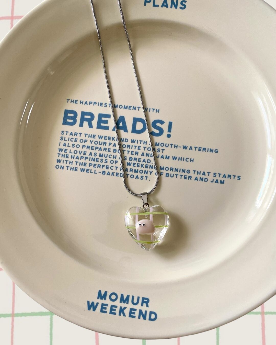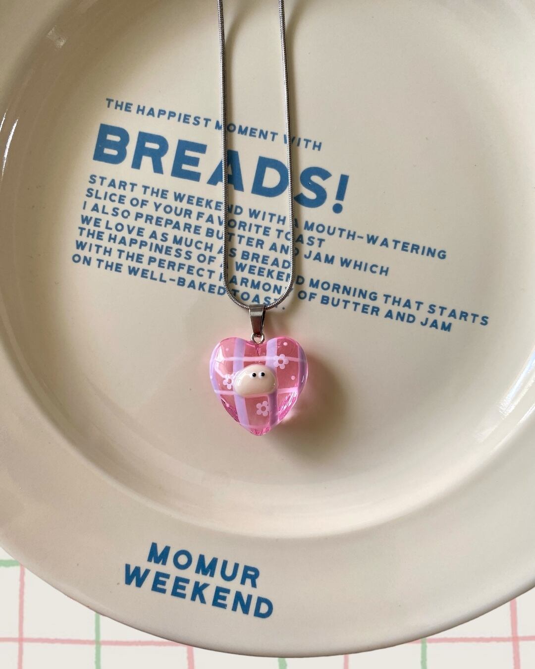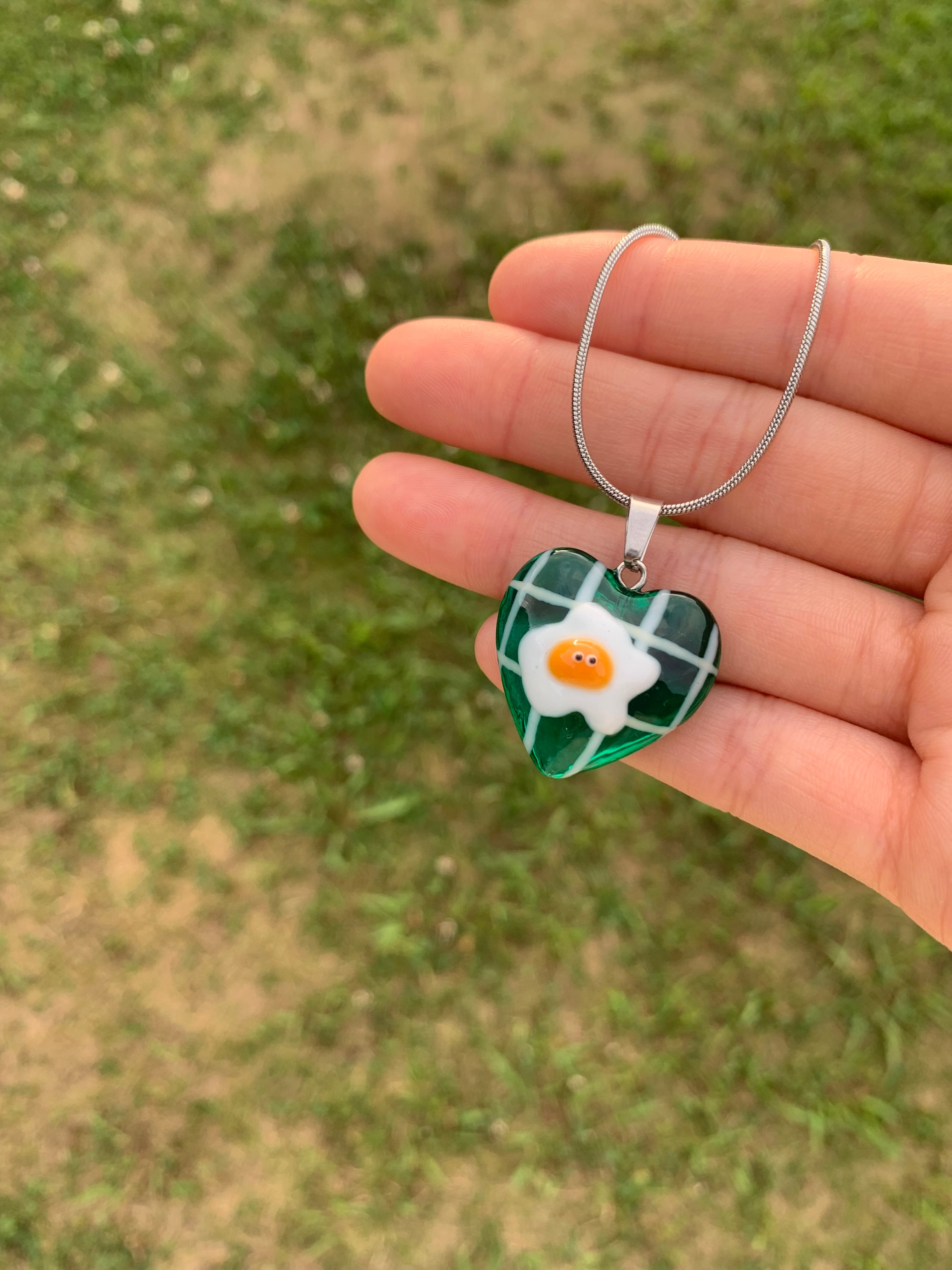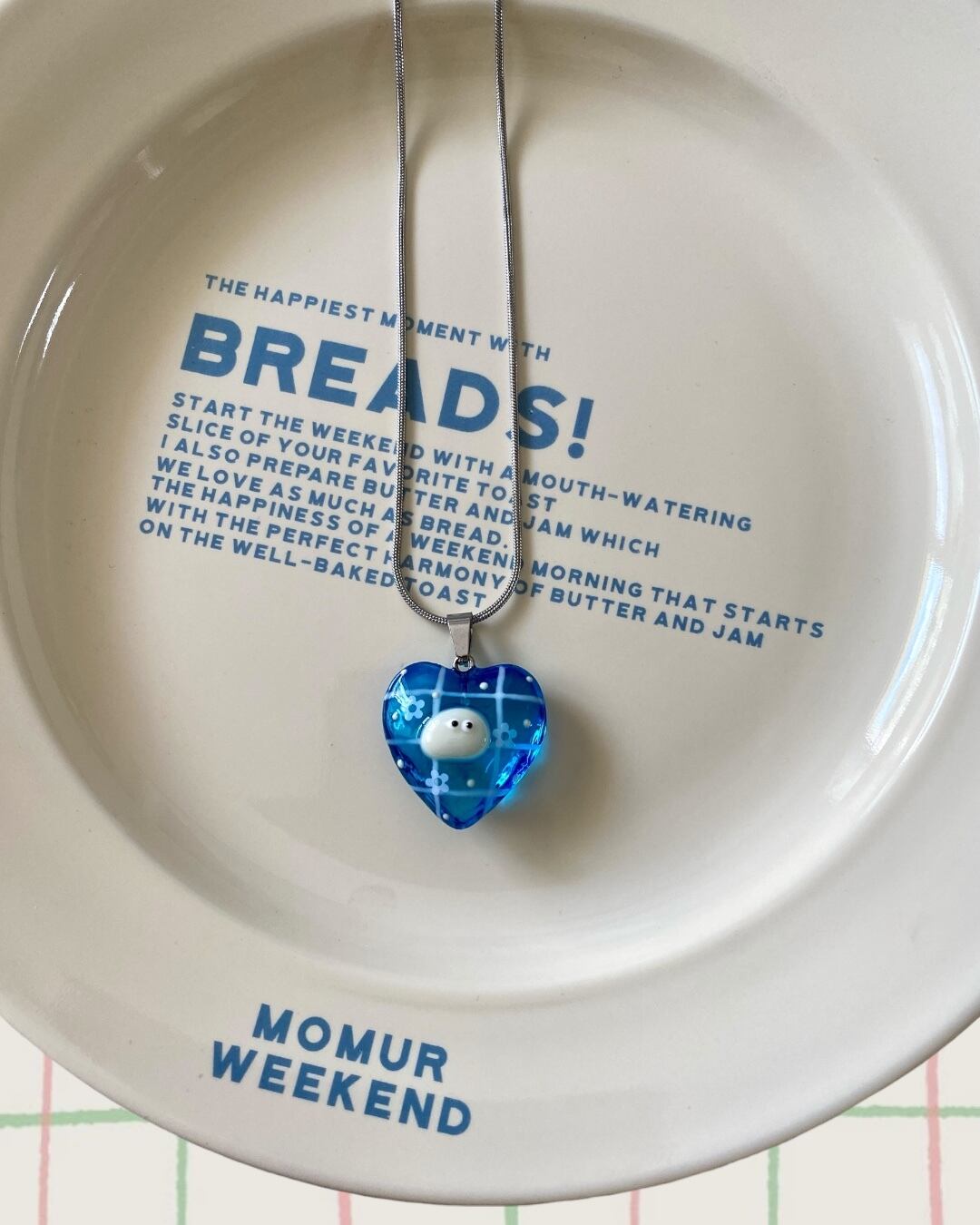 素材:ステンレスシルバーチェーン、ガラスハートチャーム、レジン