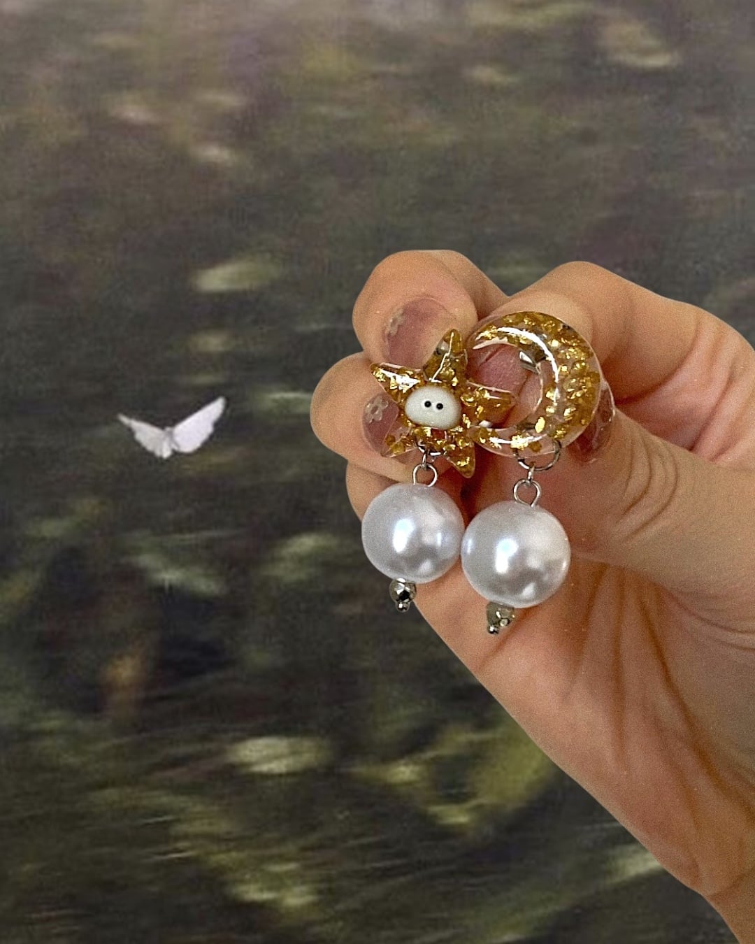 素材:ステンレススタッドピアス、レジン、パール他