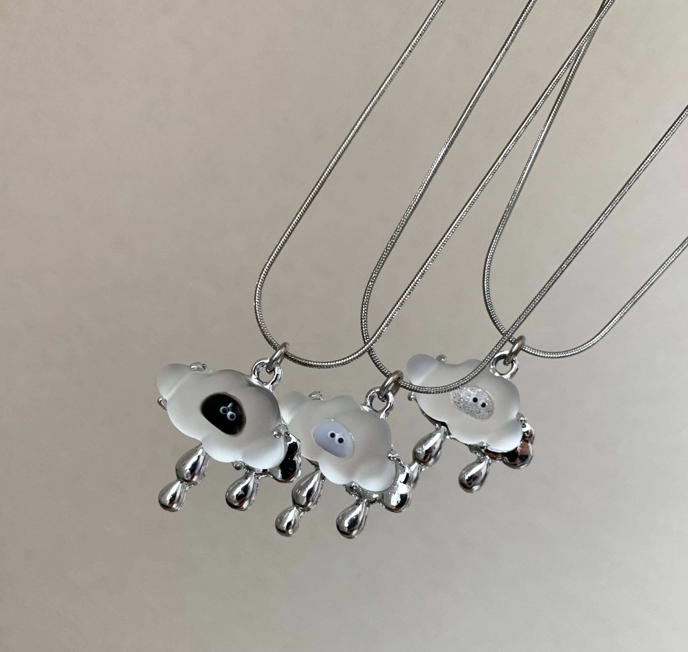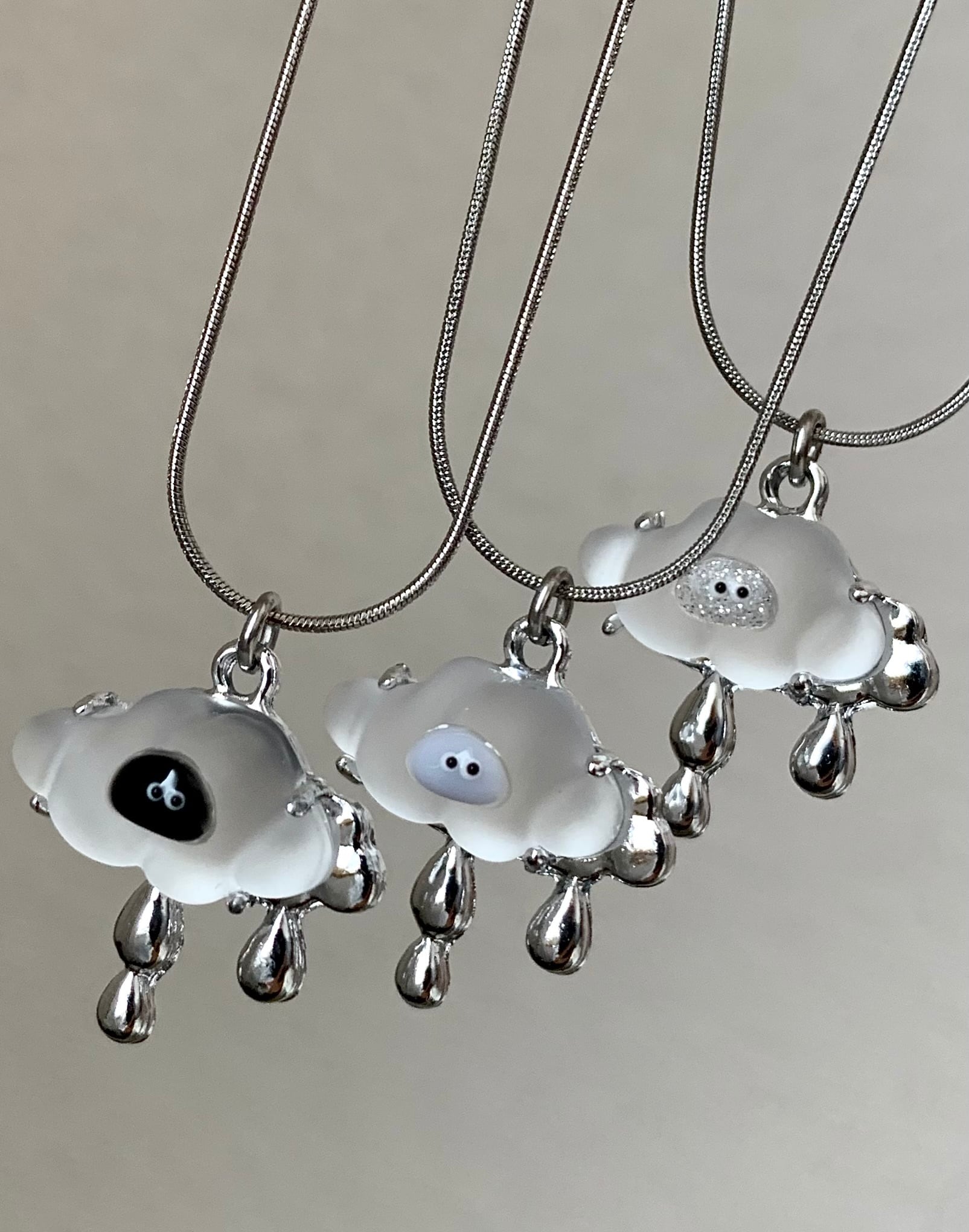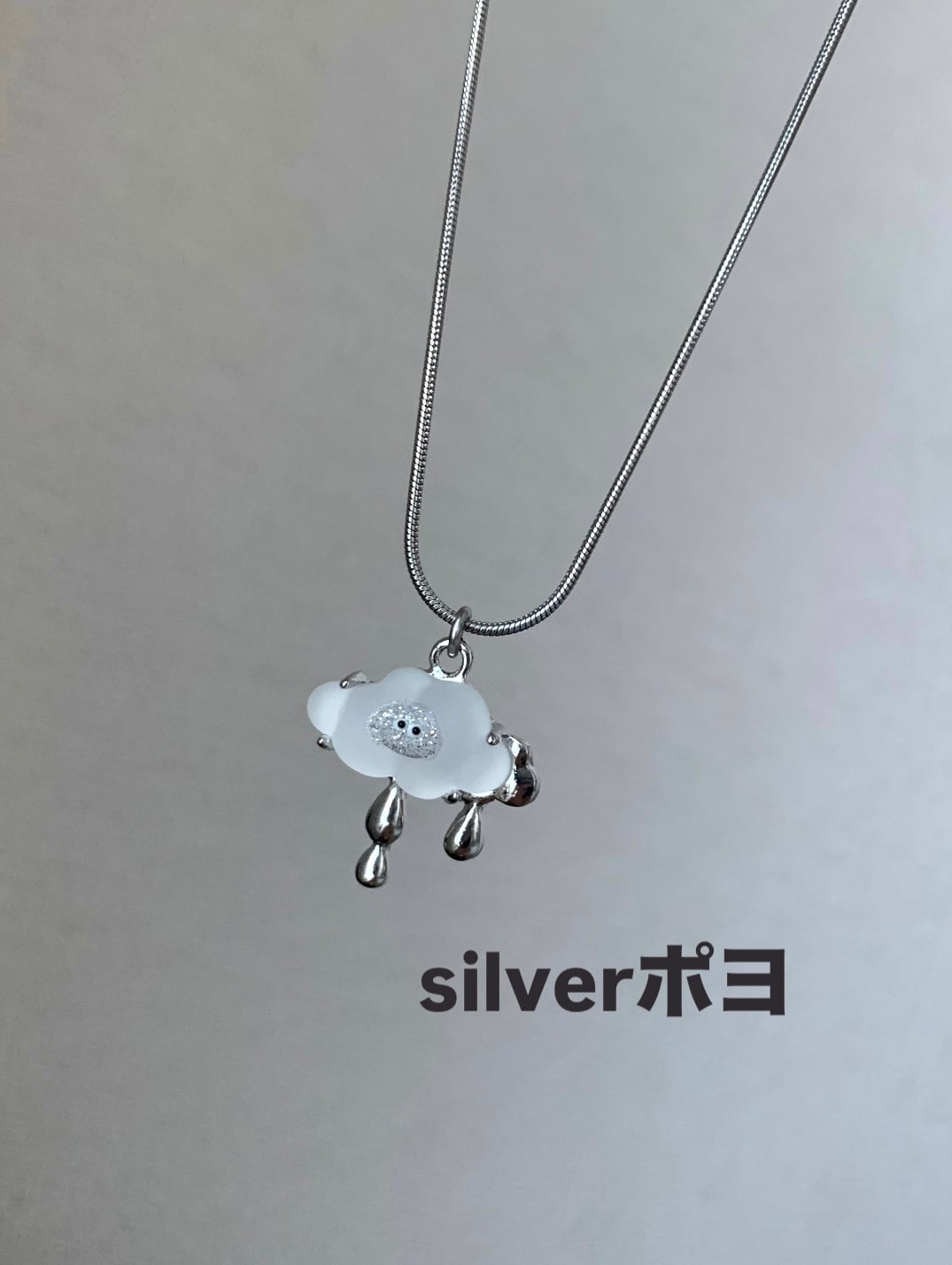 素材:シルバーステンレスチェーン、雲ガラスチャーム、レジン