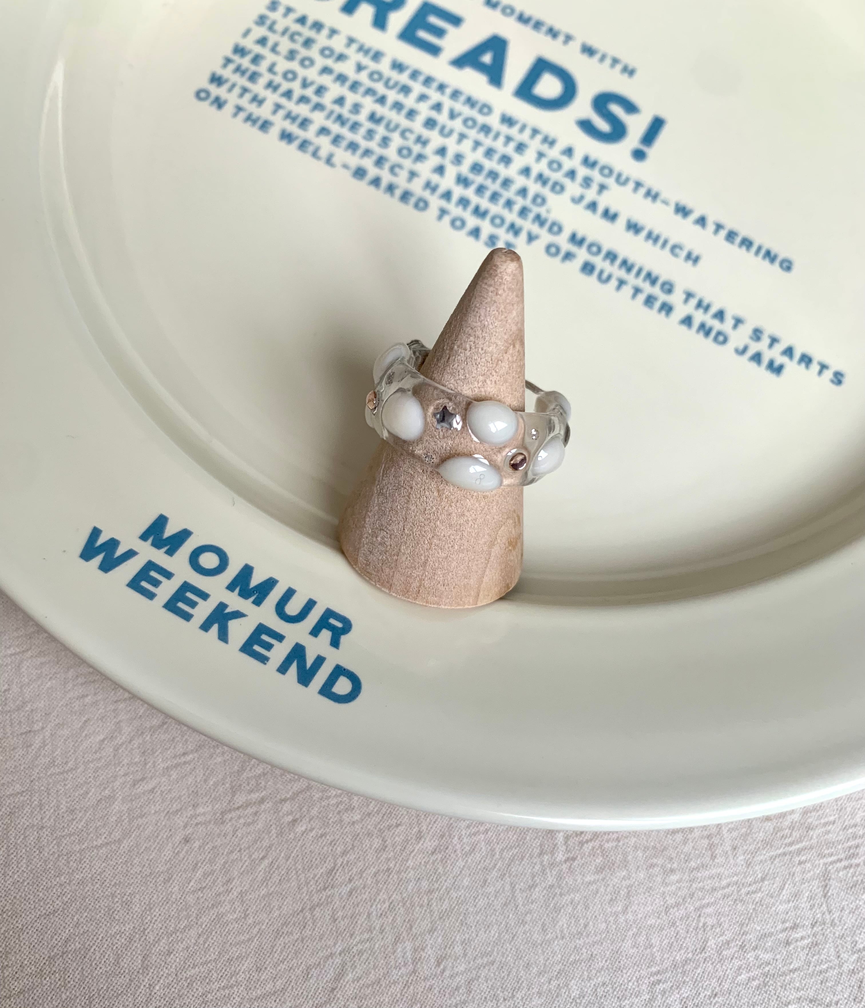クリスタルパーツとスターパーツが散りばめられた遊び心たっぷりのクリアリングです