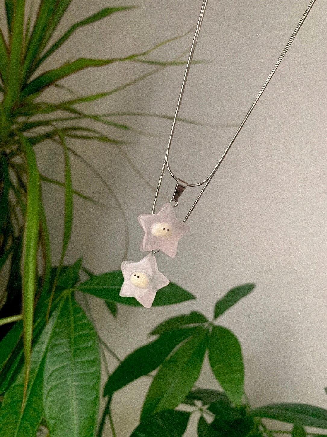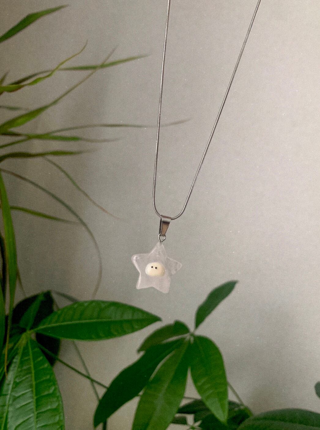 星型のストーンチャームにポヨがデザインされたシルバーネックレス
