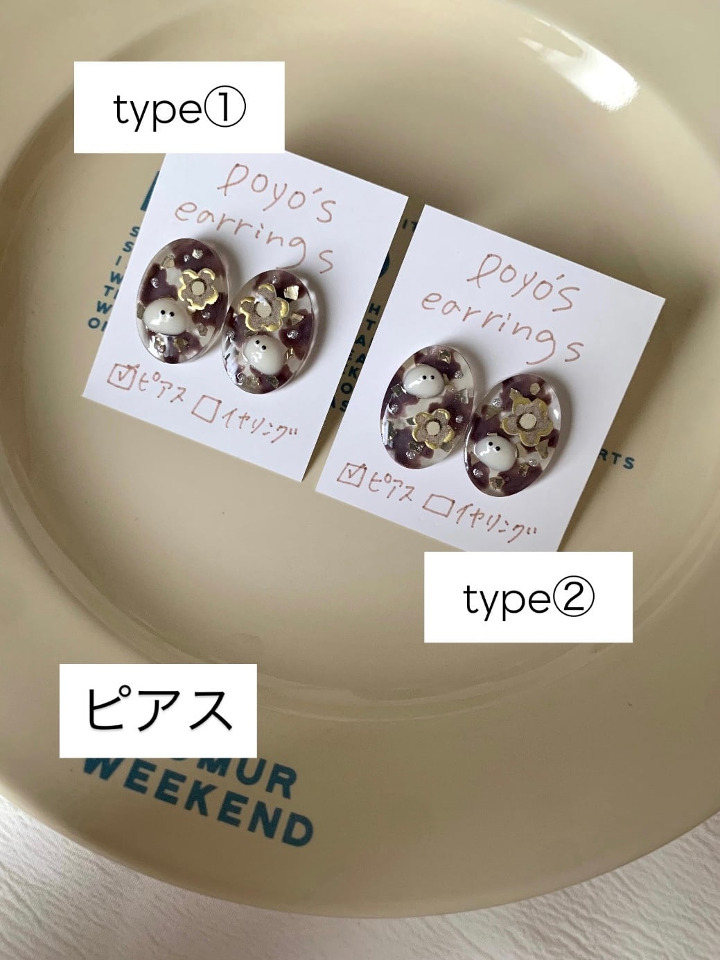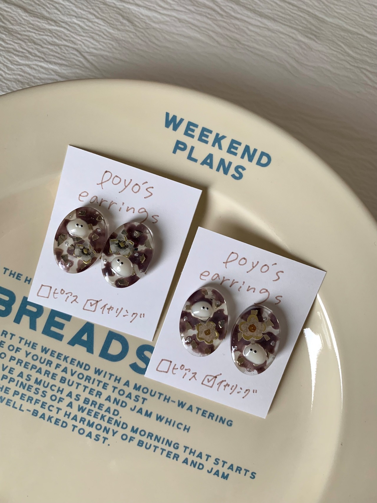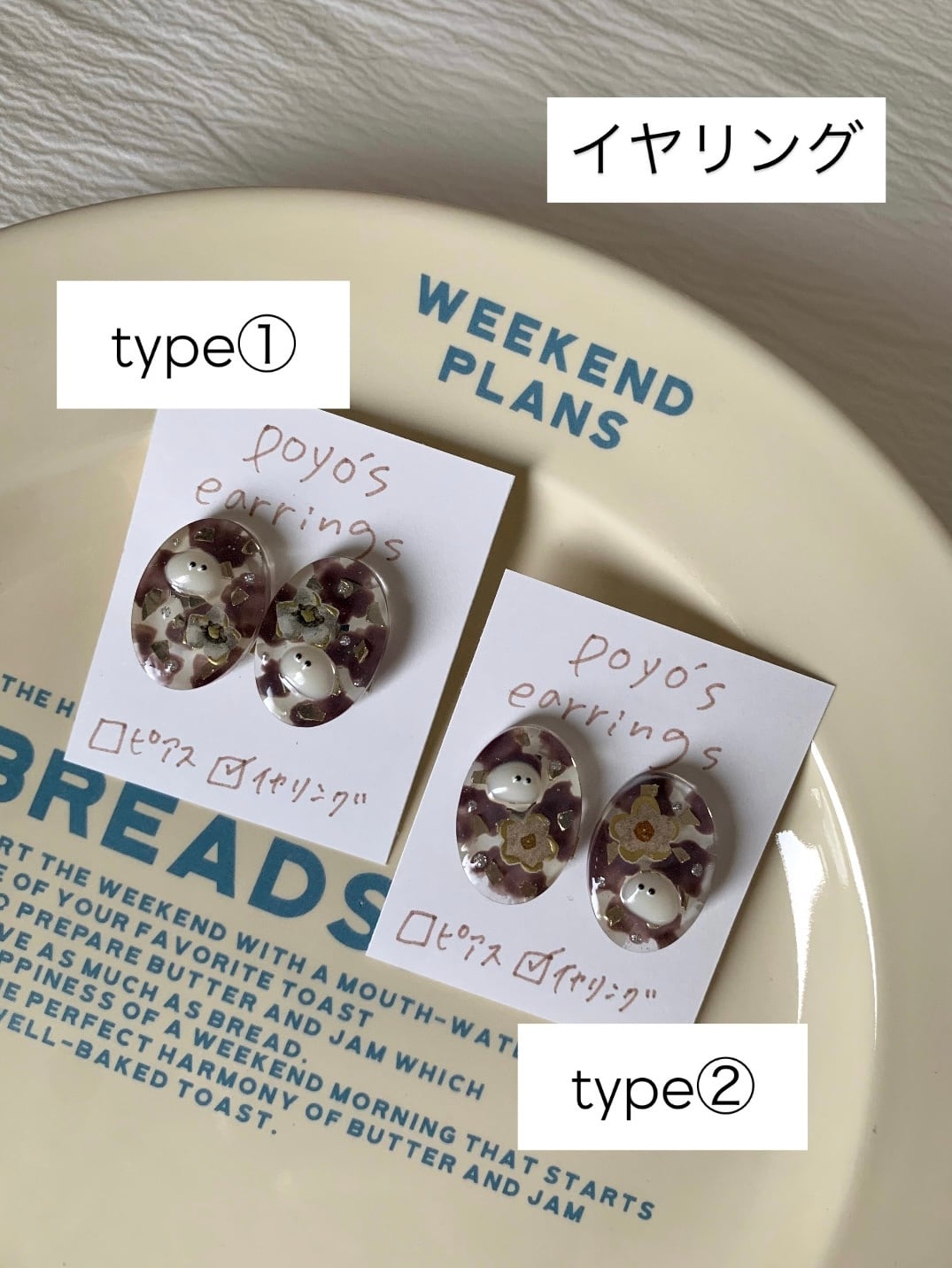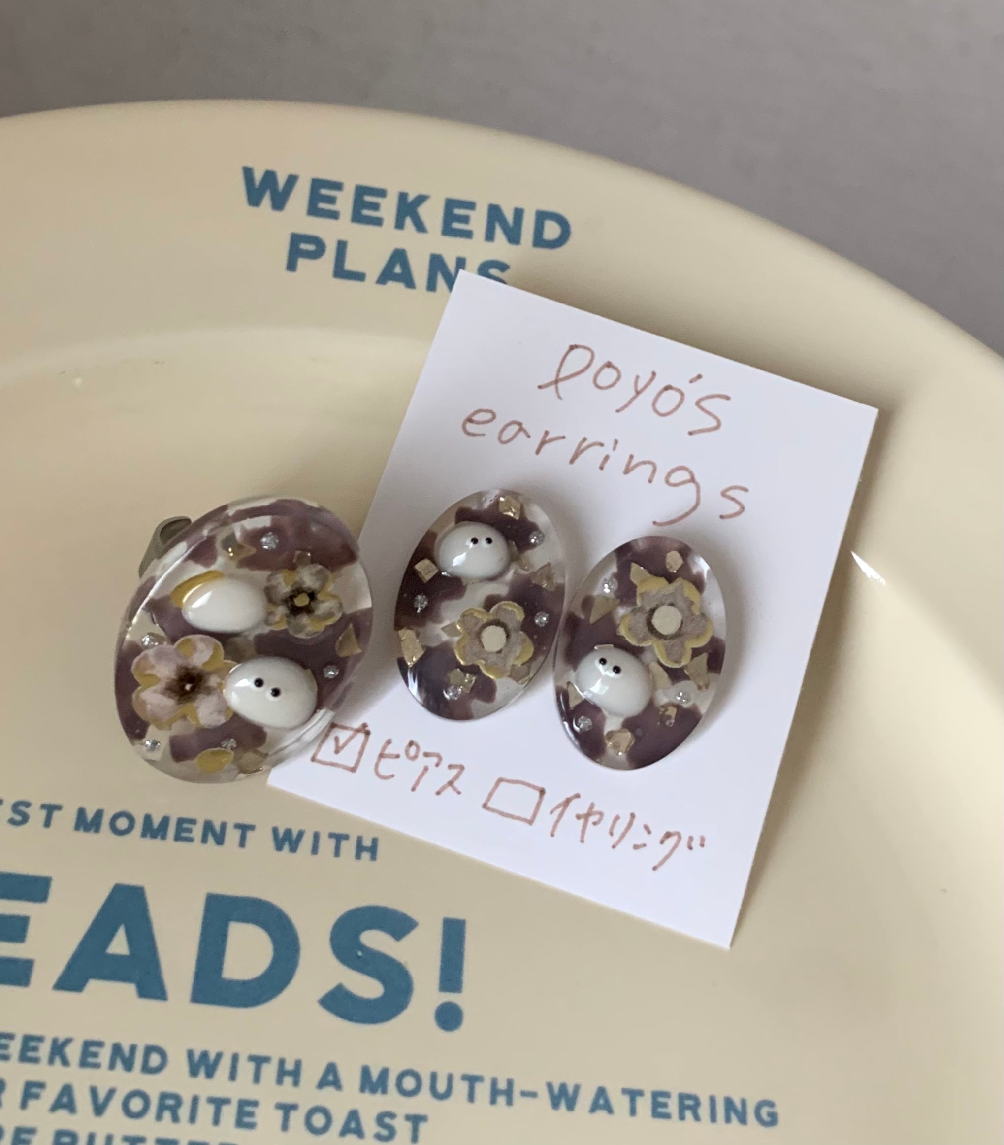 素材:ステンレススタッドピアスorクリップ式イヤリング、レジン、アクリル他