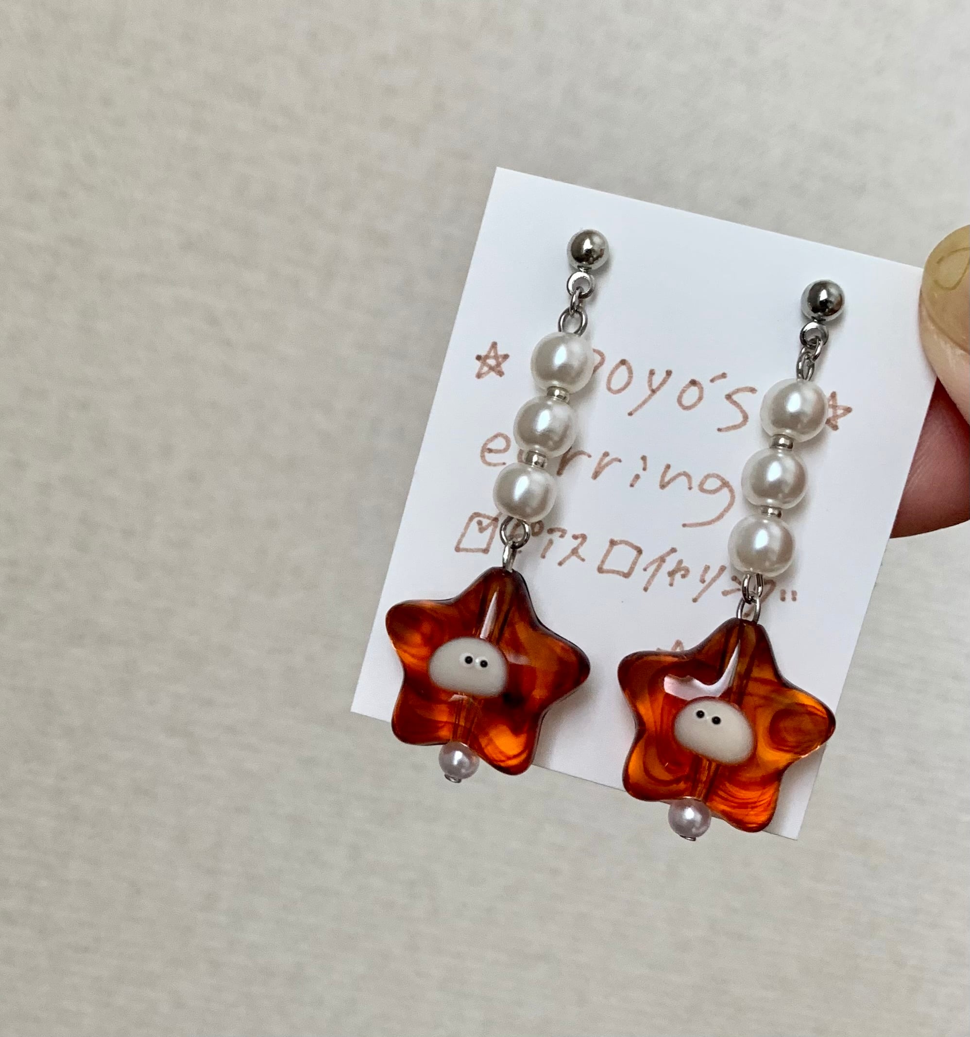 素材:ステンレススタッドピアスorネジバネ式イヤリング、アクリル製星ビーズ、パール、シードビーズ他