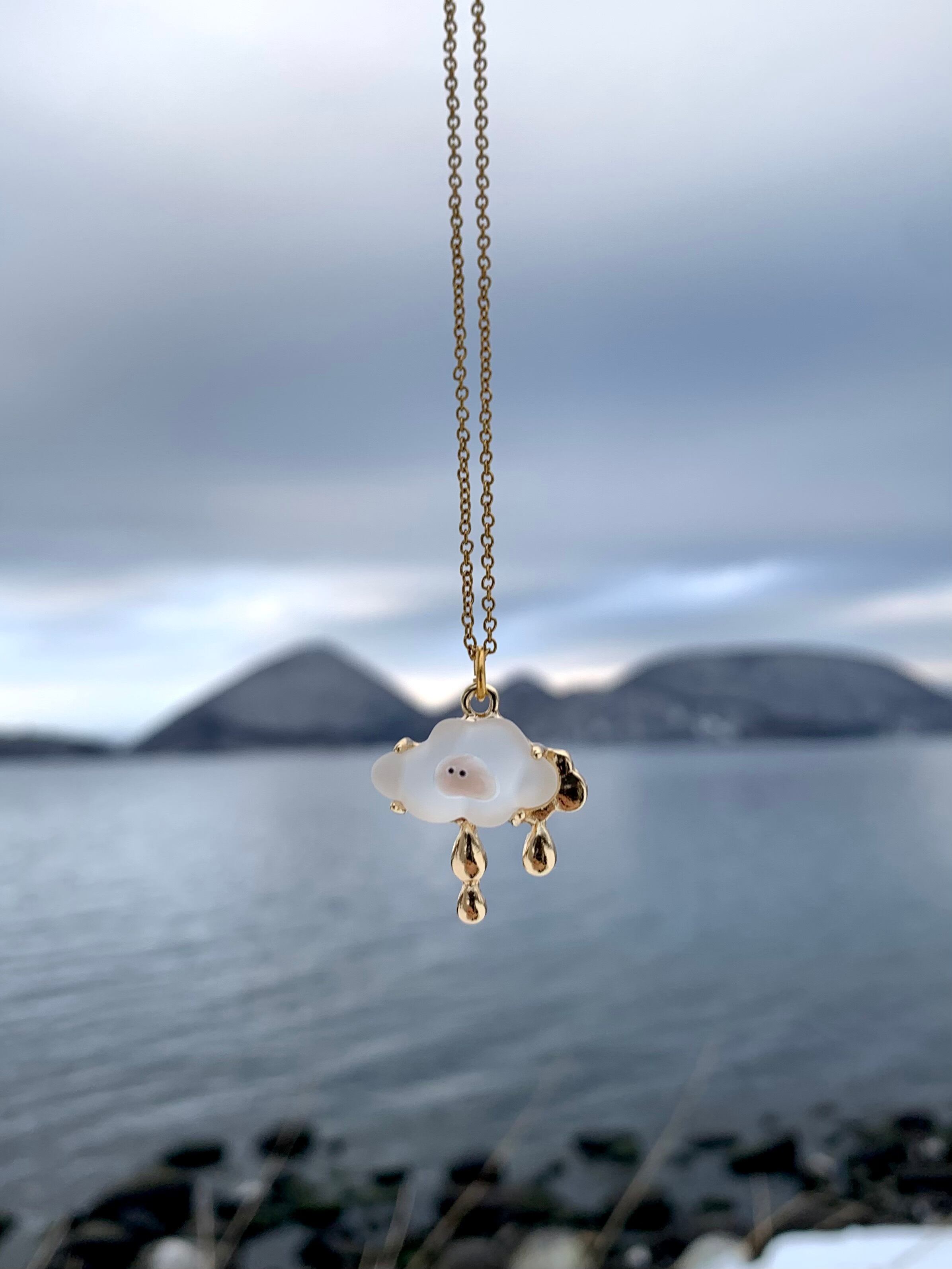 素材:ステンレス製ゴールドチェーン、雲ガラスチャーム、レジン他